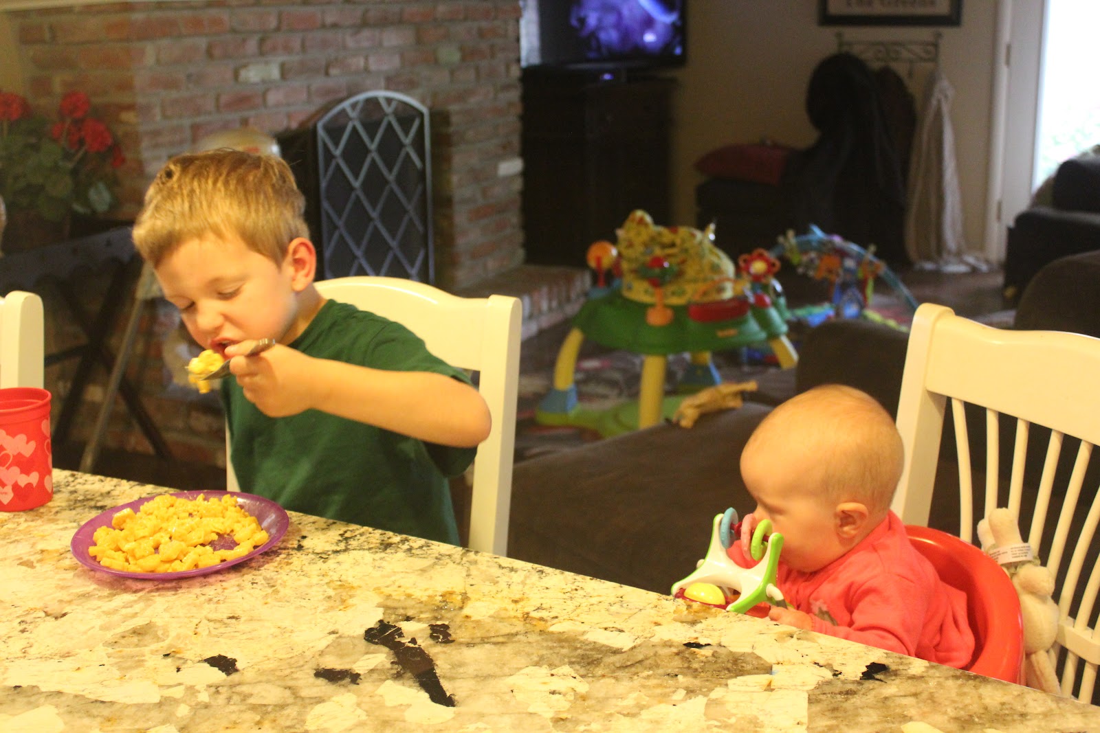 lunch today was interesting... she's always been a fan of food, but she was aggressively staring at jack's mac n cheese. it was torture for her!!